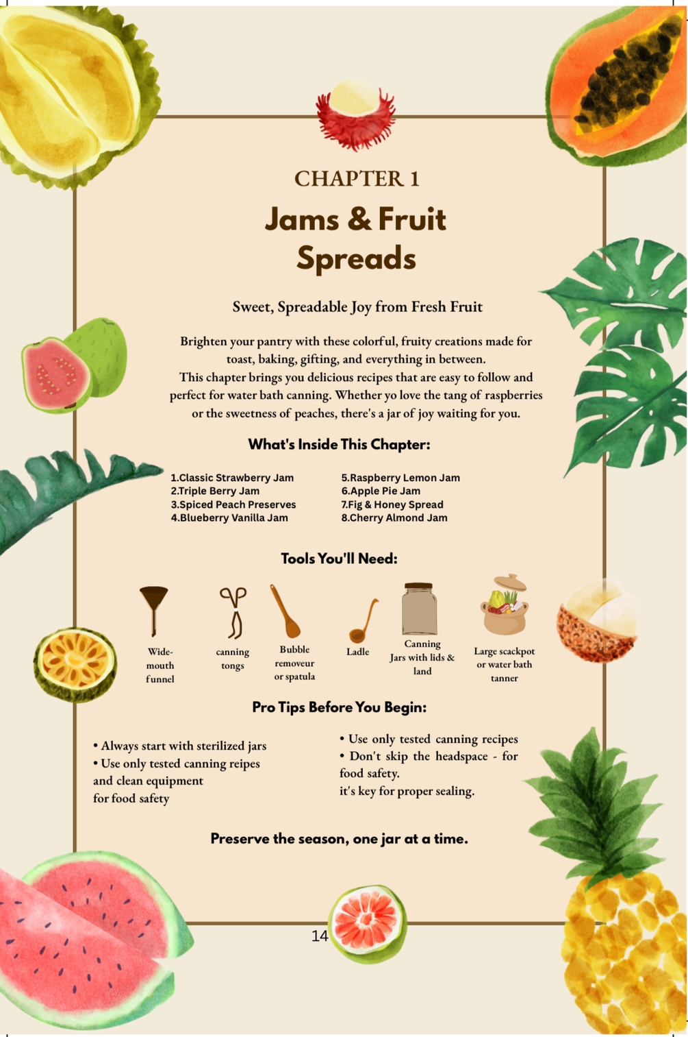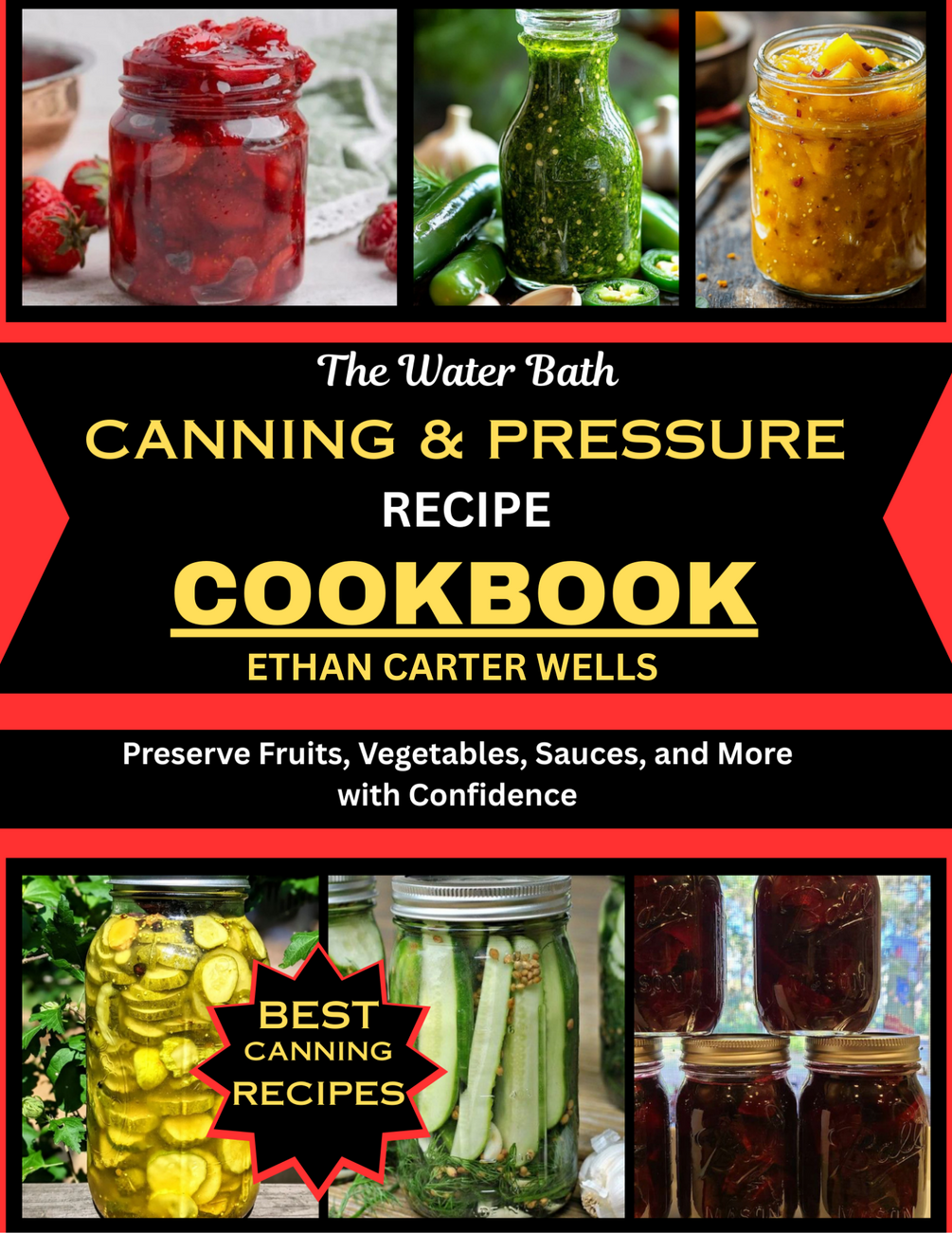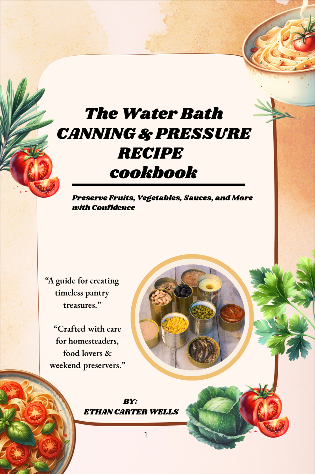 Discover the joy of homemade canning! The Water Bath CANNING & PRESSURE RECIPE COOKBOOK is your step-by-step guide to safe, delicious, and long-lasting preserves. Packed with easy recipes, clear instructions, and flavor-boosting tips, this cookbook helps you stock your pantry with jams, jellies, pickles, sauces, and more. Perfect for beginners and experienced home preservers alike.